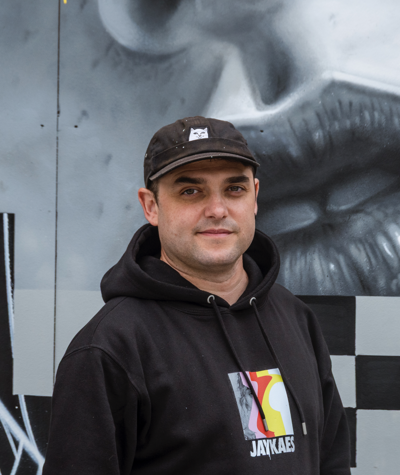 Jay Kaes (born 1985) is a Spanish artist based in London, whose murals and paintings have been showcased across five continents and in over 20 countries. His work has been featured by major media outlets including BBC News, The Independent, and Sky News, and has been written about in more than 10 languages. Kaes holds a Master’s degree in Fine Arts, awarded through a scholarship.